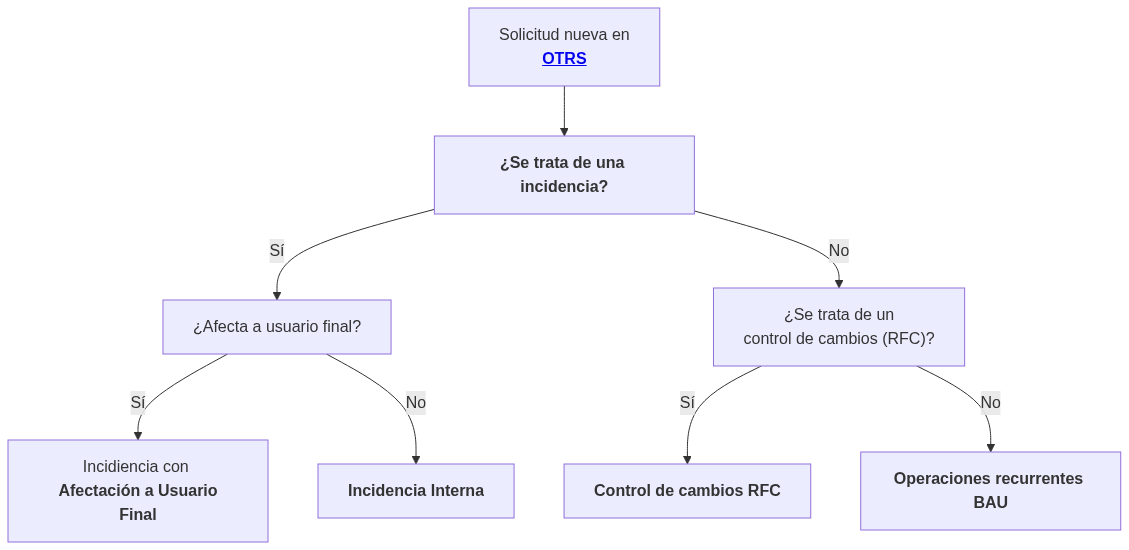 El siguiente diagrama de flujo ayuda a identificar cuál tipo de solicitud elegir: